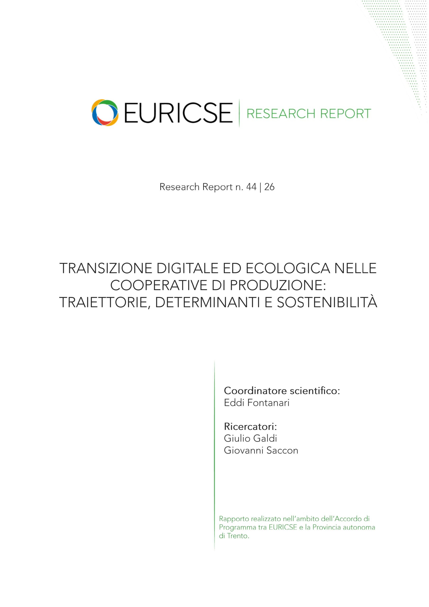 Il rapporto analizza come le cooperative di produzione (lavoro) e agricole, con focus sul Nord Est italiano, stiano affrontando la doppia transizione digitale ed ecologica, evidenziando il ruolo della governance, delle strategie organizzative e dell’innovazione integrata nel promuovere uno sviluppo sostenibile e inclusivo.