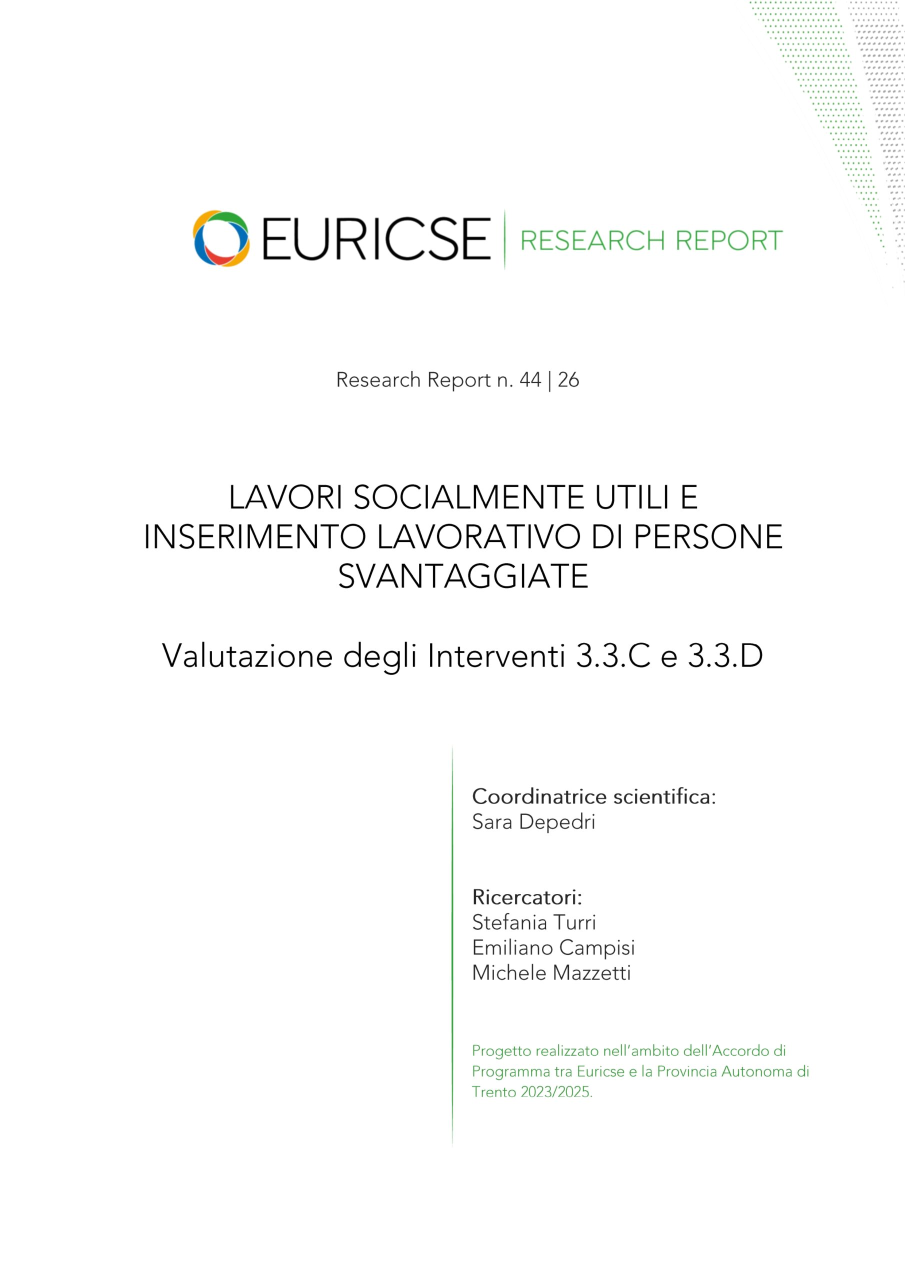 Lavori socialmente utili e inserimento lavorativo di persone svantaggiate. Valutazione degli Interventi 3.3.C e 3.3.D